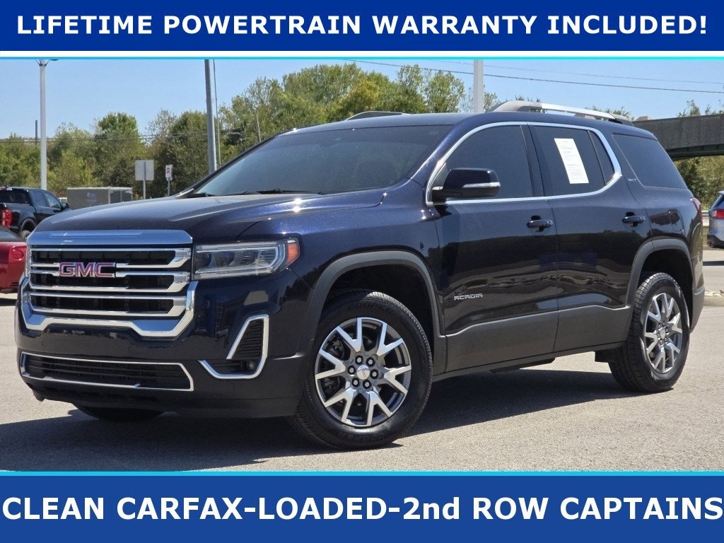 Free CARFAX report! DESIRABLE FEATURES: *LOCAL-TRADE-IN*, HEATED-SEATS, LEATHER, NAVIGATION, REMOTE START, APPLE CARPLAY, CLEAN CARFAX, BOSE AUDIO, 3RD ROW SEAT, ANDROID AUTO, POWER-LIFTGATE, BLUETOOTH, BACKUP CAMERA, MULTI-ZONE AC, ALLOY-WHEELS, FOG LAMPS, 2nd ROW CAPTAINS, SiriusXM, Remote Entry. Your 2021 GMC Acadia SLT is ready for daily work or weekend road trips to our neighboring communities of Clarksville and Fort Campbell.