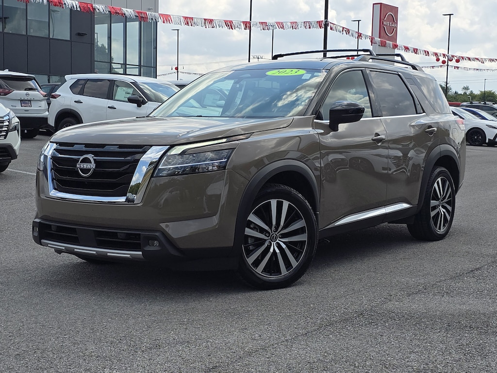 Introducing the 2023 Nissan Pathfinder Platinum, a sophisticated blend of power and luxury designed to elevate your driving experience. With just 25,229 miles, this meticulously maintained SUV is equipped with a robust 3.5L V6 engine and advanced 4WD system, ensuring a smooth and responsive ride in diverse driving conditions. This Nissan Pathfinder Platinum stands out with its elegant exterior design and premium features. Inside, the cabin is adorned with high-quality leather seats that provide ultimate comfort for both driver and passengers. The heated steering wheel and seats offer additional warmth and luxury during colder months. Stay connected and entertained with the integrated Apple CarPlay and Android Auto, allowing seamless smartphone integration for navigation, music, and communication. The state-of-the-art back-up camera enhances safety and ease of parking, providing a clear view of your surroundings. This vehicle combines advanced technology with impressive performance, making it an ideal choice for those seeking versatility and sophistication. Whether navigating city streets or exploring off-road trails, the 2023 Nissan Pathfinder Platinum delivers on all fronts, offering a premium driving experience with its perfect balance of style, functionality, and capability. Discover the exceptional qualities of this Nissan Pathfinder today and redefine your journey.