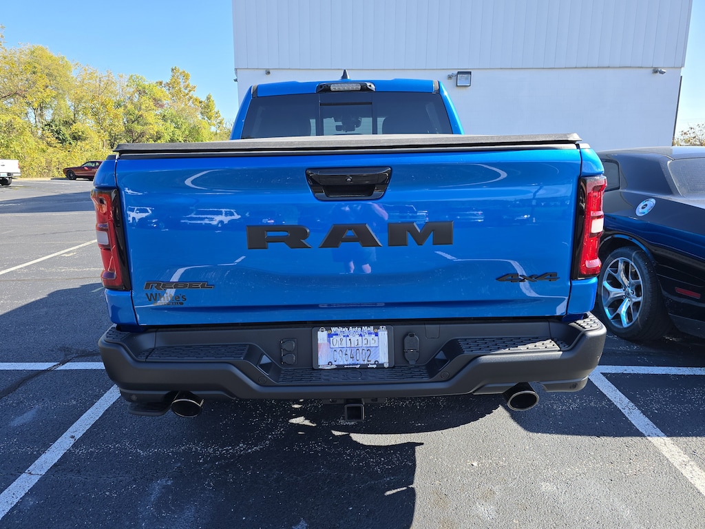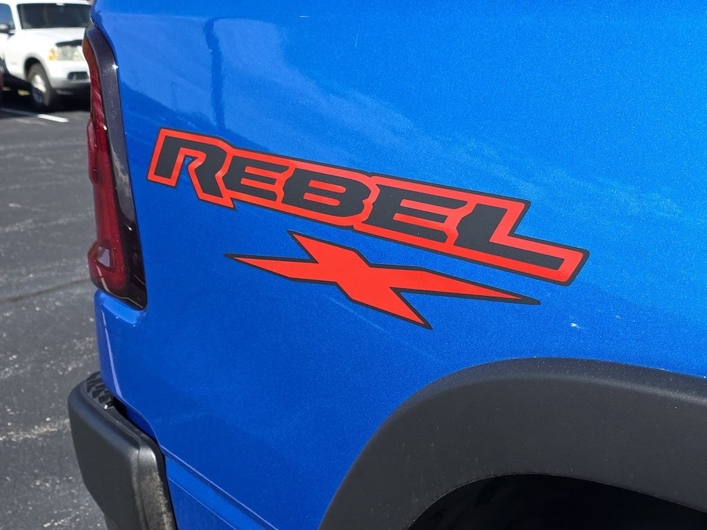 Advanced Safety Group II: Active Driving Assist System; Surround View Camera System; Evasive Steer Assist; Drowsy Driver Detection; Intersection Collision Assist System; Traffic Sign Recognition; 12-Way/1-way Trailer Connector. Towing Technology Group: Trailer Hitch Line-Up Assist; Trailer Reverse Guidance. Technology Group: Head Up Display; LED CHMSL Lamp; Digital 3.0 Rear View Auto Dim Mirror; 12-Way/1-way Trailer Connector. Bed Utility Group: MOPAR Spray in Bedliner; MOPAR Deployable Bed Step; MOPAR 4 Adjustable Cargo Tie-Down Hooks; Exterior 115V AC Outlet. Rebel Level 2 Equipment Group: Google Android Auto; USB Host Flip; Rear Window Defroster; Rain Sensitive Windshield Wipers; Power Adjustable Pedals with Memory; Front Passenger Interactive Display; Integrated Voice Command with Bluetooth; Connectivity - US/Canada; Auto Power-Folding Mirrors; GPS Navigation; 4G LTE Wi-Fi Hot Spot; 115V Auxiliary Rear Power Outlet; GPS Antenna Input; Media Hub with 2 Charge Only USBs; Exterior Mirrors with Heating Element; Proximity Approach/departure Lamps; Auto Dim Exterior Driver Mirror; SiriusXM with 360L; Accent Color Door Handles; Connected Travel and Traffic Services; Heated Second Row Seats; Power Adjust 8-Way Front Passenger Seat; Security Alarm; Apple CarPlay; Black Painted Exterior Mirrors Caps; Off-Road Information Pages; Exterior Mirrors Approach Lamps; HD Radio; Smartphone as a Key Capable; Accent Color Premium Power Mirrors; Dual Wireless Charging Pad; Exterior Mirrors with Supplemental Signals; Exterior Mirrors Courtesy Lamps; Uconnect 5 Nav with 14.4" Display; Harman/kardon 19 Speaker Premium Sound; 2-Door Passive Entry.  Front Door Locks; Accent Color Tailgate Handle; Exterior Mirrors with Memory; Driver Seat Memory; Power Tailgate; Convex Wide-Angle Exterior Mirror Insert; Radio/driver Seat/mirrors/pedals Memory. Rebel X: Floor Console; Premium Leather/vinyl Bucket Seats; Special Edition Console Badge; Leather Wrapped Shift Knob; Leather-Wrapped Steering Wheel; Steering Wheel Mounted Shift Control; Dual-Pane Panoramic Sunroof; GT Interior Theme; Rebel 10th Anniversary Side Graphics; Rough Road Cruise Control. Quick Order Package 21W Rebel. Trailer Tow Group: Forward and Reverse Utility Lights; Exterior Mirrors with Supplemental Signals; Black Power-Fold Trailer Tow Mirrors; Trailer Reverse Steering Control; Exterior Mirrors Courtesy Lamps; Manual Folding Exterior Mirrors; Trailer Tire Pressure Monitoring System; Auto Power-Folding Mirrors; Trailer Tow Mirrors; Trailer Light Check; Exterior Mirrors with Heating Element; Auto Dim Exterior Driver Mirror; Trailer Brake Control; Accent Color Tailgate Handle; Exterior Mirrors with Memory; Mirror Clearance/running Lights; Manuarl Telescoping Mirrors; Power Telescoping Mirrors; Auto Dim Exterior Passenger Mirror; Power-Adjustable Convex Aux Mirrors. Dual-Pane Panoramic Sunroof. Tri-Fold Tonneau Cover. MOPAR Black Tubular Side Steps. 33 Gallon Fuel Tank. Trailer Brake Control. Hydro Blue Pearlcoat. Hydro Blue Pearlcoat. RAM Tow Assist Kit. **Equipment listed is based on original vehicle build and subject to change. Please confirm the accuracy of the included equipment by calling the dealer prior to purchase.**